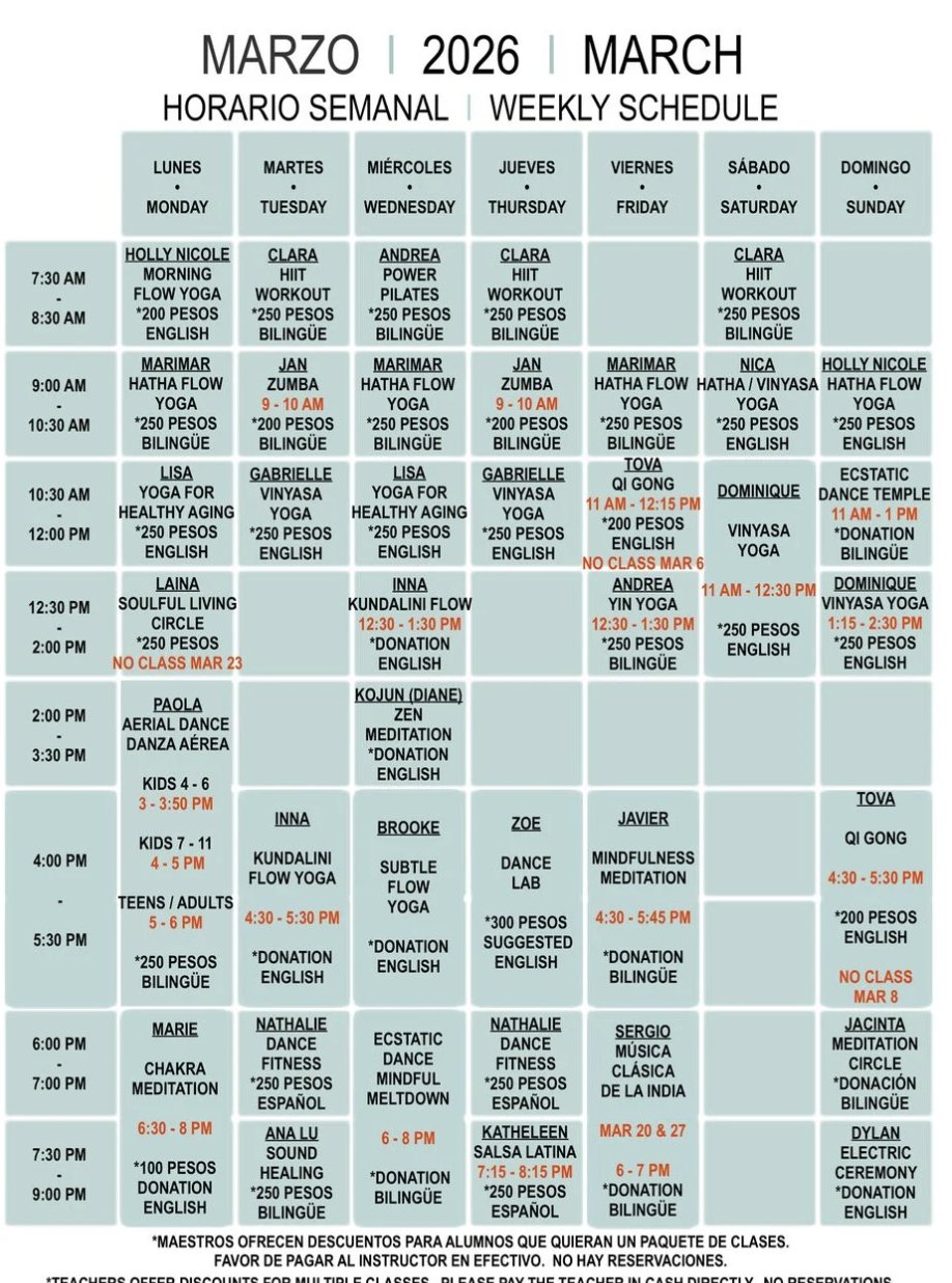 Located next door to our compound, several daily offerings include: yin & restorative, soundbath, HIIT, and vinyasa classes.
